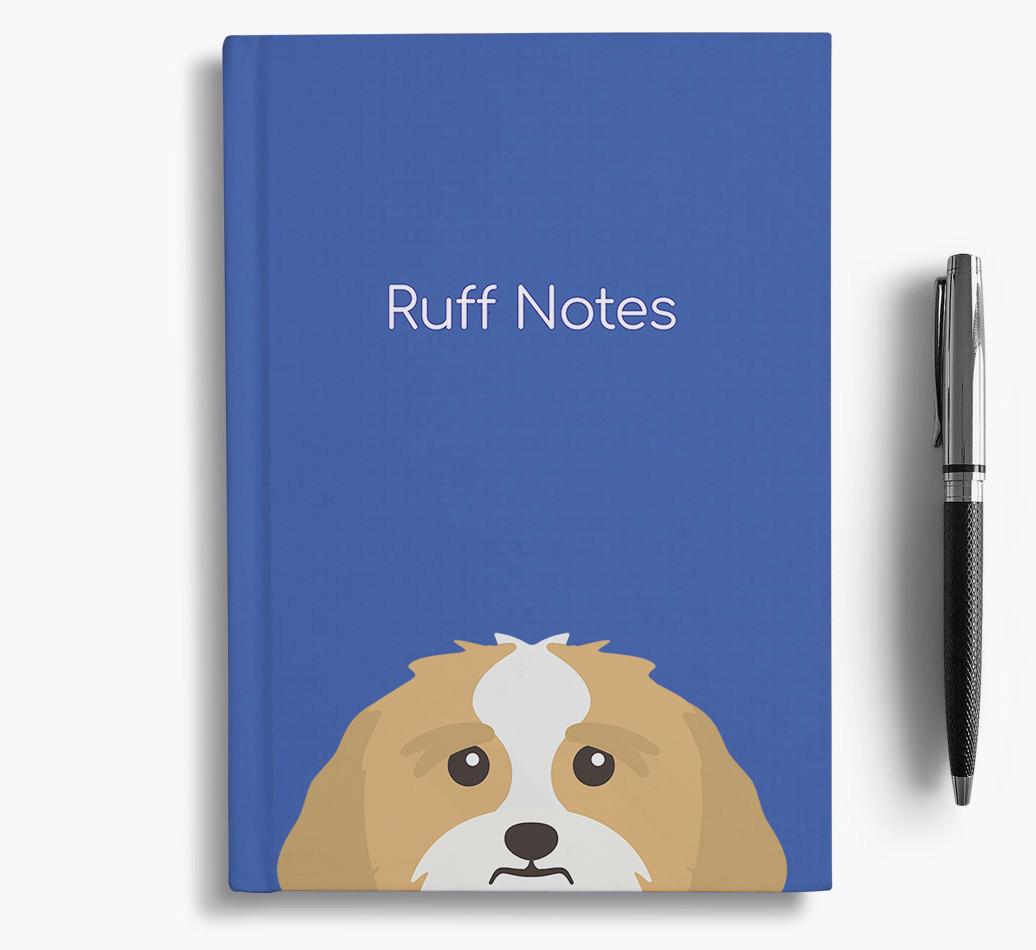 The front cover features our exclusive Lhasa Apso peeking icon and is printed with the words, ‘Ruff Notes’, whilst the back is printed with the words ‘Live. Laugh. Woof.’.