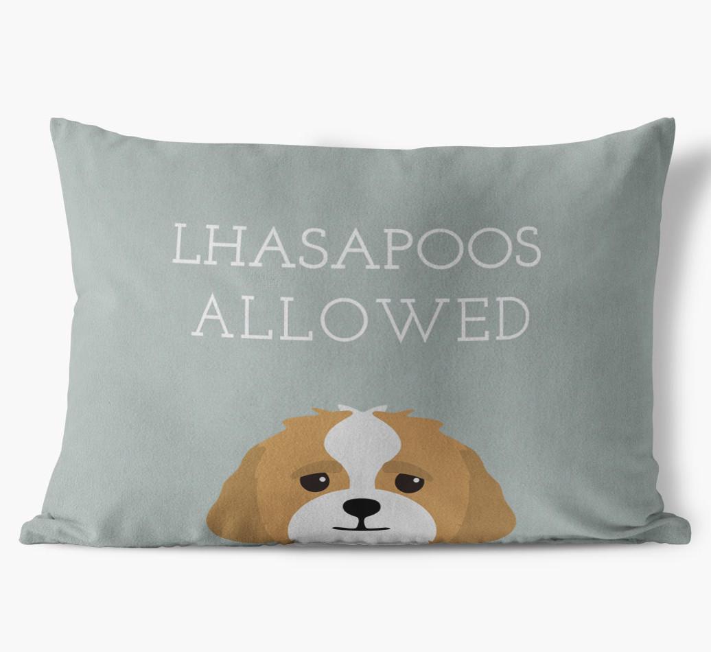 This exclusive, luxurious pillow is printed with the words ‘Lhasapoos Allowed’, which I’m sure Your Lhasapoo would definitely approve of.