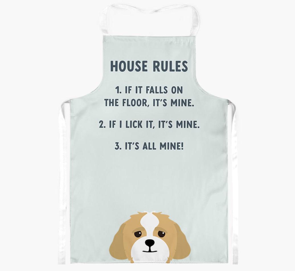 A fun way to show off your greedy pup, this stylish apron is personalized with your furry friend's icon and features their rules when it comes to food.