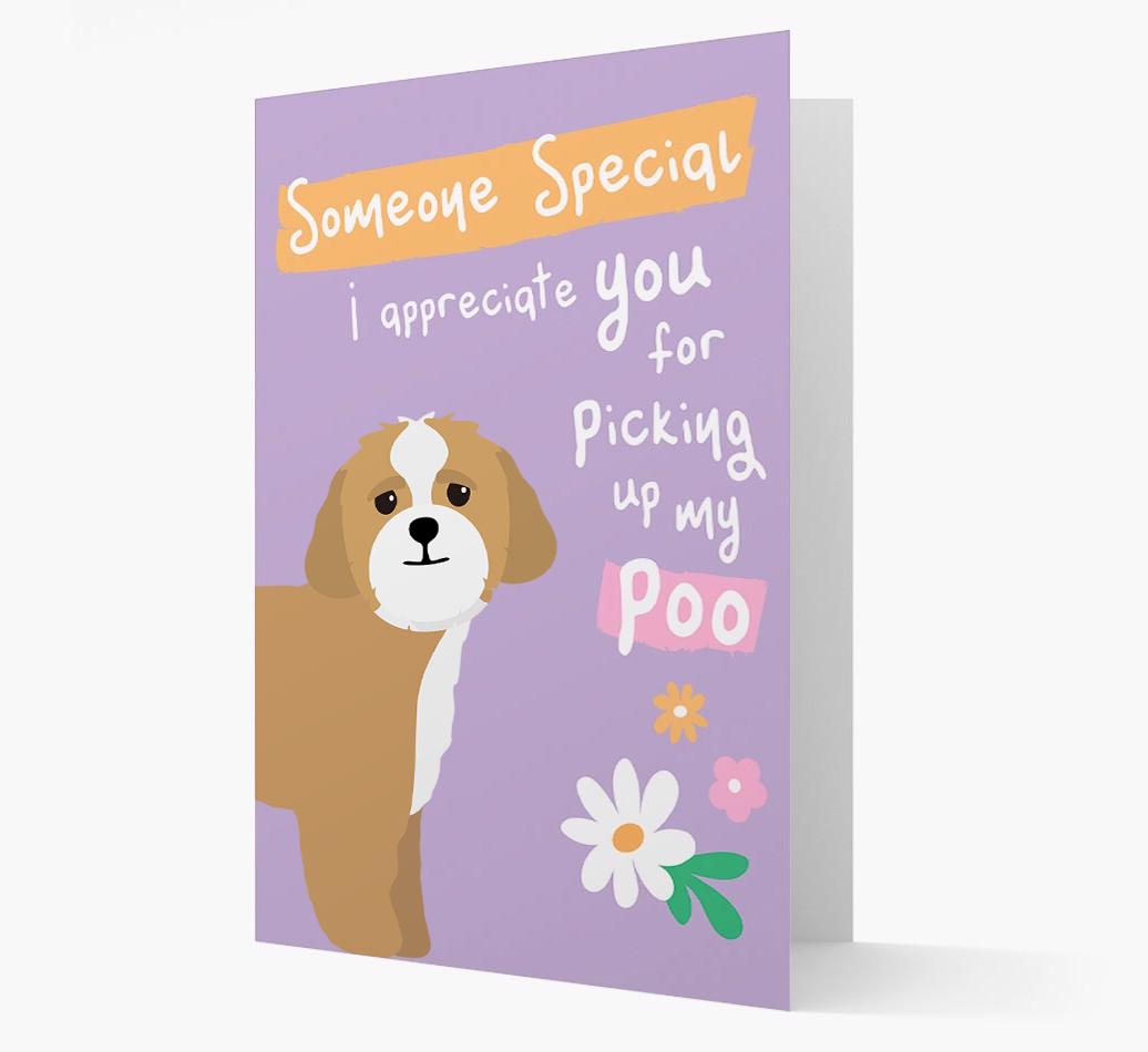 Featuring a charming Lhasapoo icon and a pattern of colorful flowers, everything will be coming up roses when the recipient sees this card!