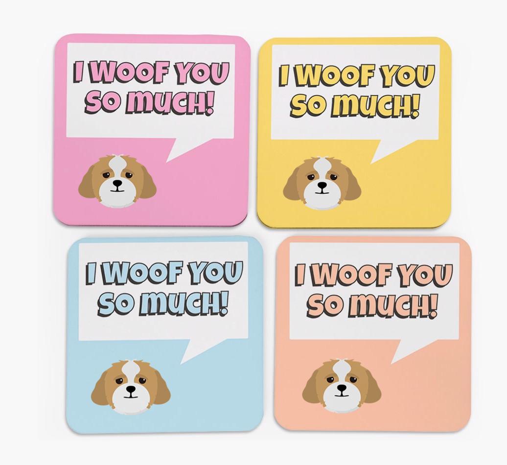 'I Woof You So Much' - Personalized Lhasapoo Coasters (Set of 4)