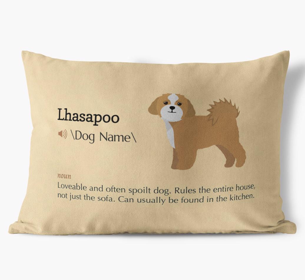 Personalized just for Your Lhasapoo and featuring a unique Lhasapoo definition and silhouette, this pillow truly is like no other.