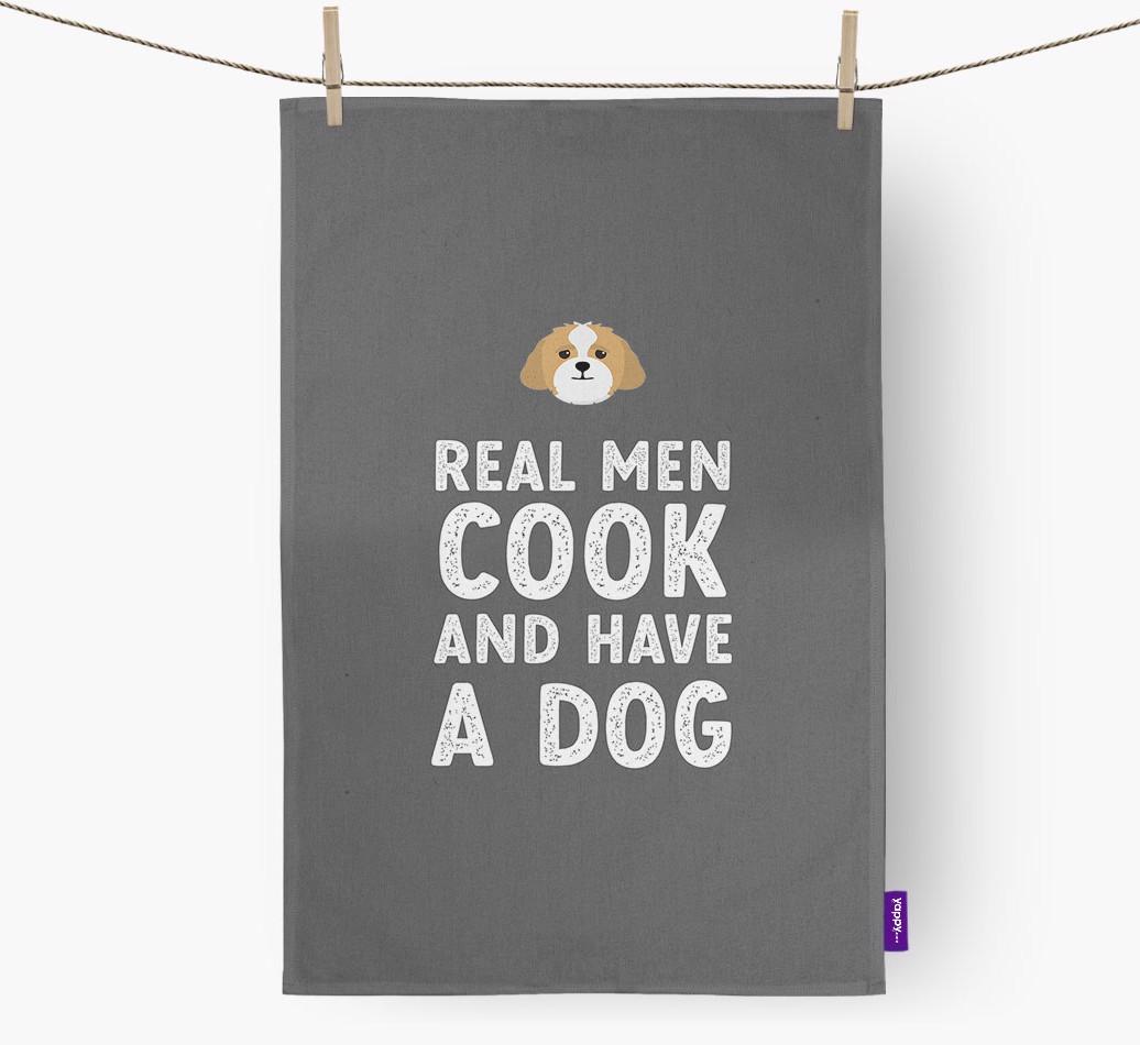 Real Men Cook And Have A Dog: Personalized Lhasapoo Dish Towel