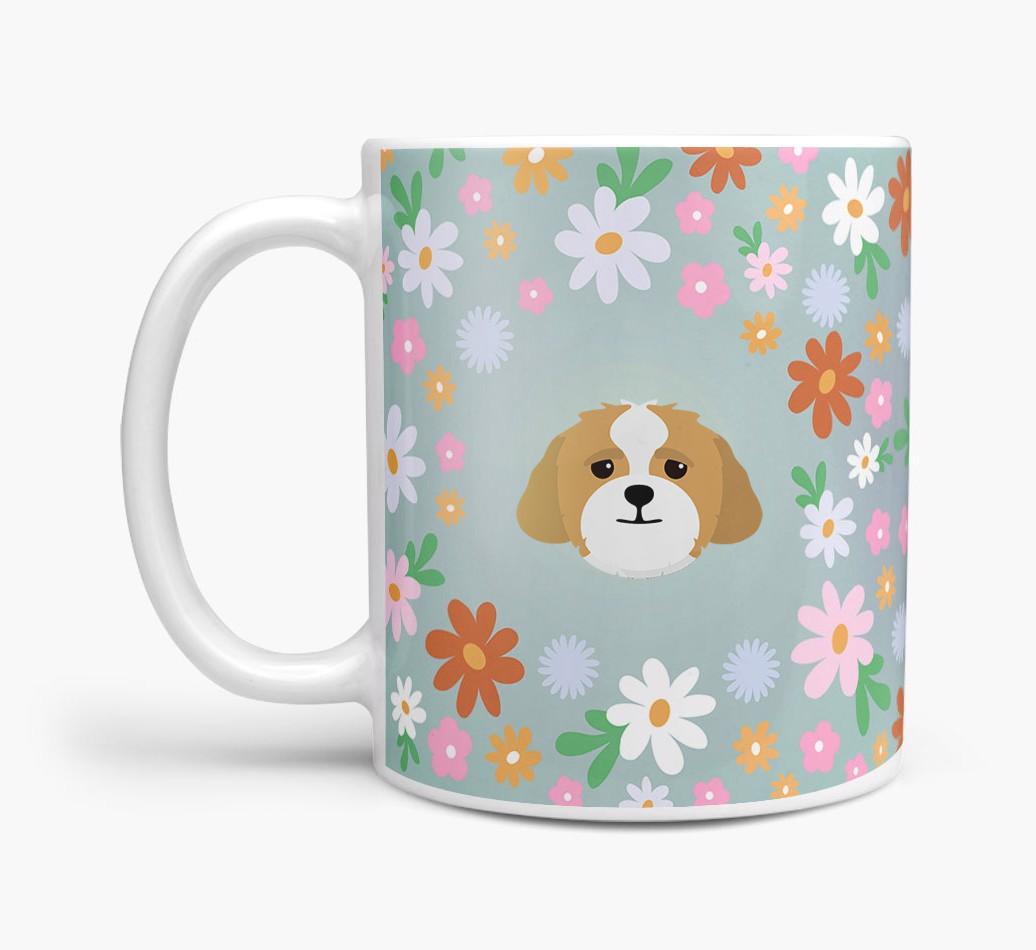 Featuring a colorful bunch of flowers, this mug is printed with the words 'woofly grandma' on one side of the mug and your Lhasapoo's cute icon on the other. Bloomin' lovely!