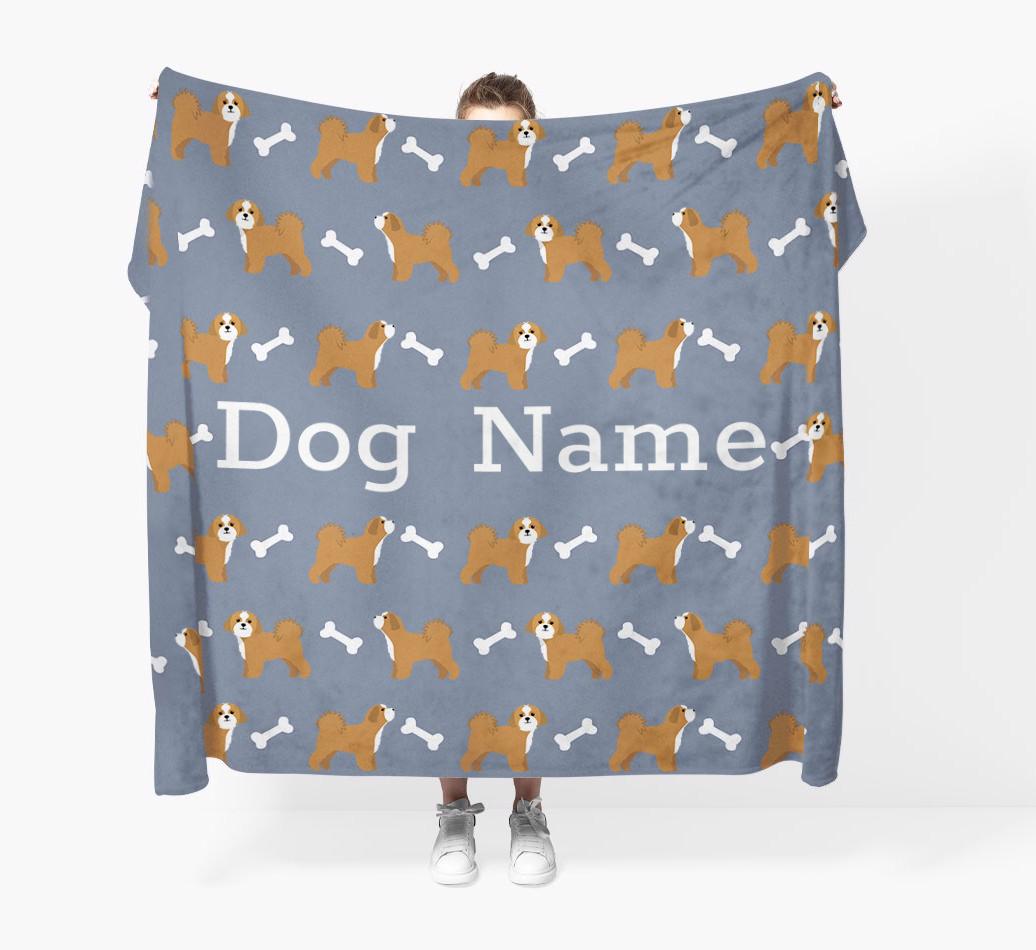 'Bones and Dogs' - Personalized Lhasapoo Throw Blanket
