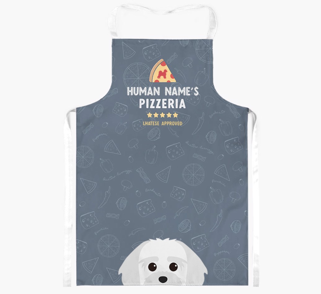 Featuring your furry friend's icon and lick of approval, plus your chosen human name, this apron is pawfect for anyone who considers themselves a pizza maestro in the kitchen. Available in a choice of 5 rustic colors, it'll make any Lhatese lover happy.