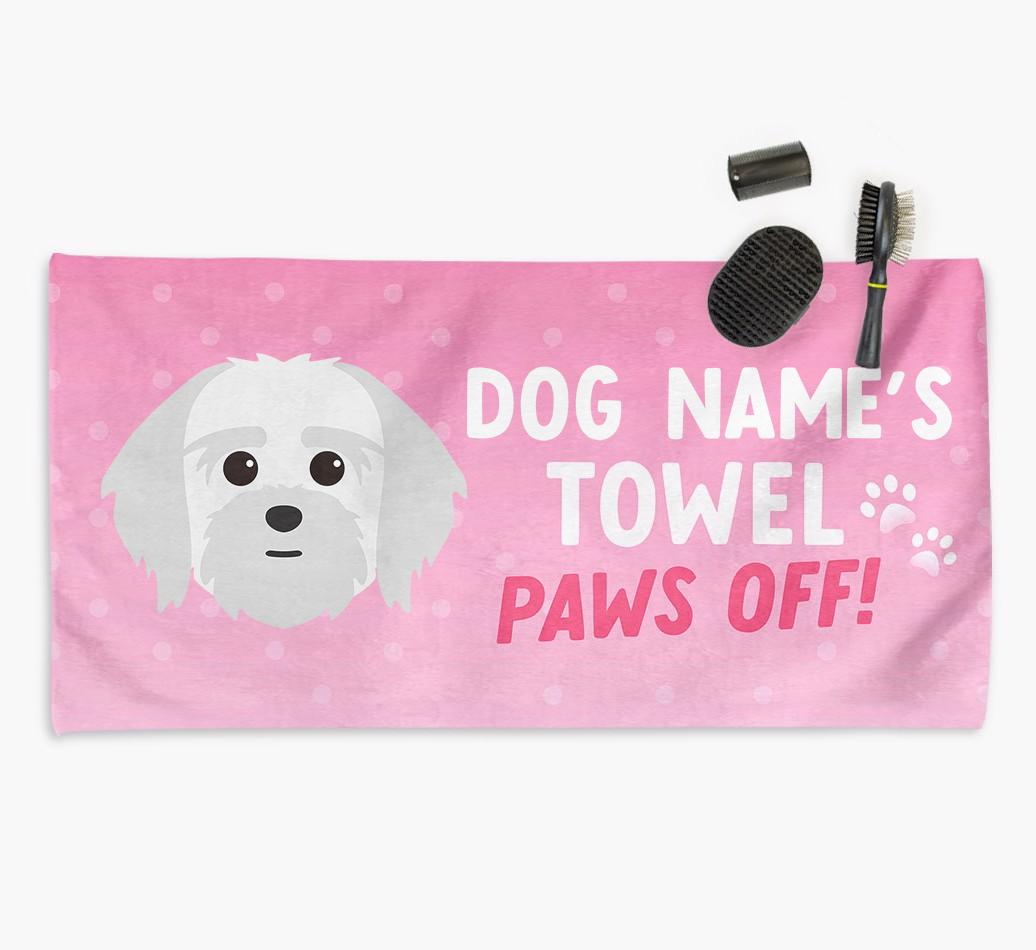 Perfect for messy pups and for pampering your Lhatese at bathtime, this soft and absorbent towel is made for cleaning your mucky pup and drying them off in a flash. It's personalized with Lhatese's name and icon and is printed with a message for everyone else to keep their paws off it!