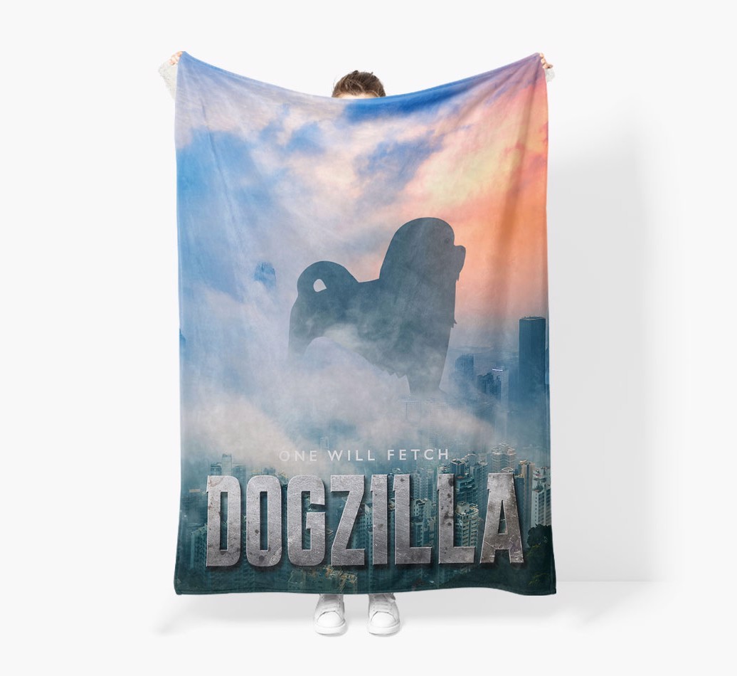 'Dogzilla' - Personalized Löwchen Blanket: Premium Sherpa Fleece