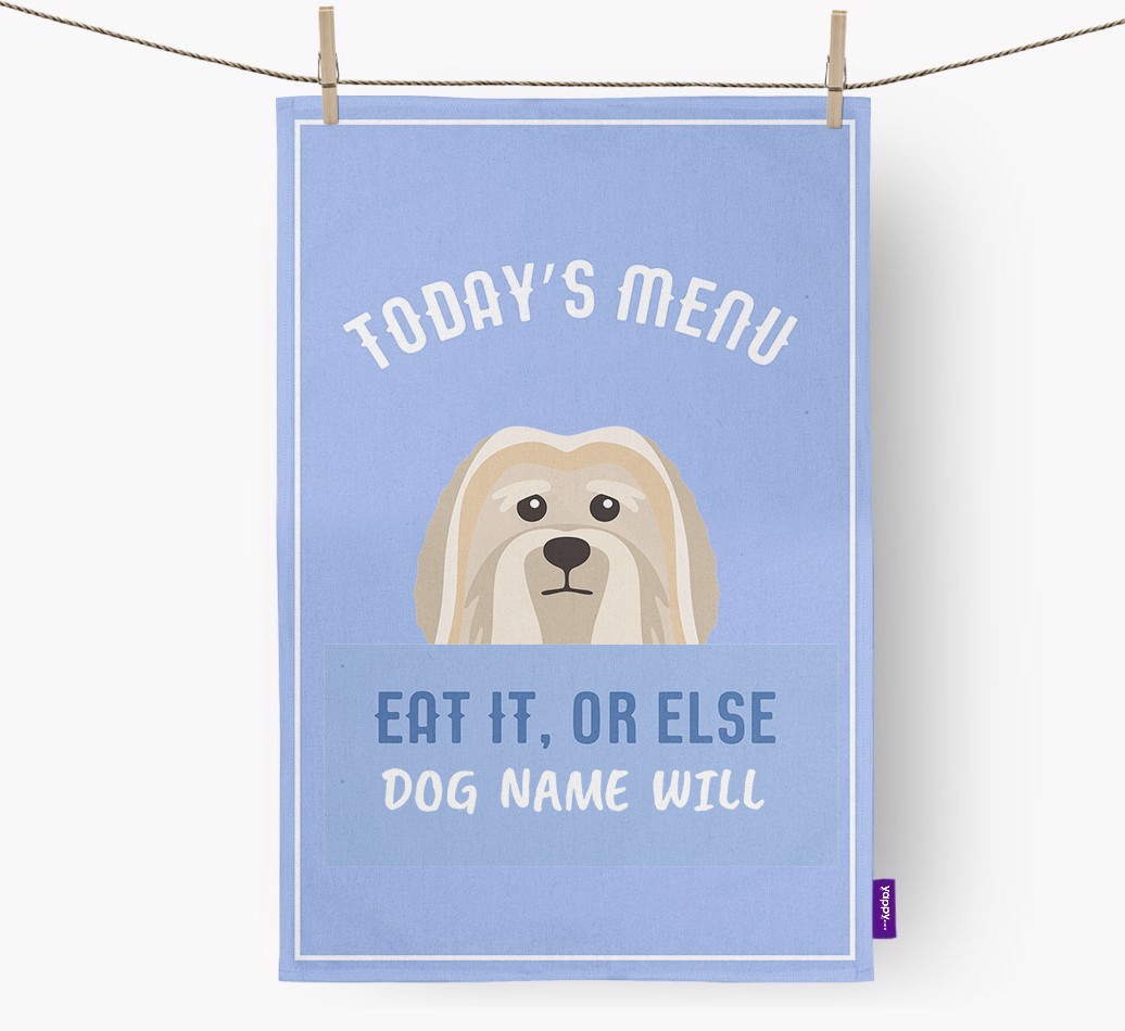 'Eat It, Or Else...' - Personalized Löwchen Dish Towel