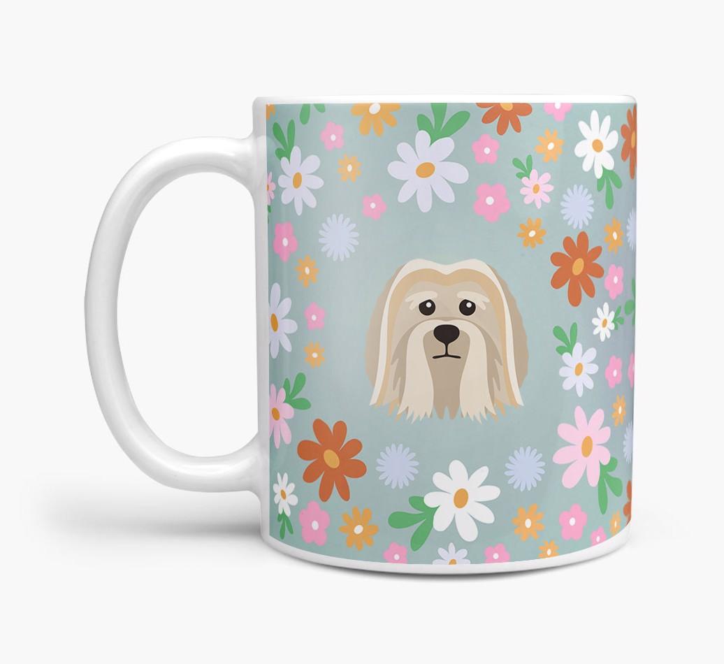 Featuring a colorful bunch of flowers, this mug is printed with the words 'woofly grandma' on one side of the mug and your Löwchen's cute icon on the other. Bloomin' lovely!