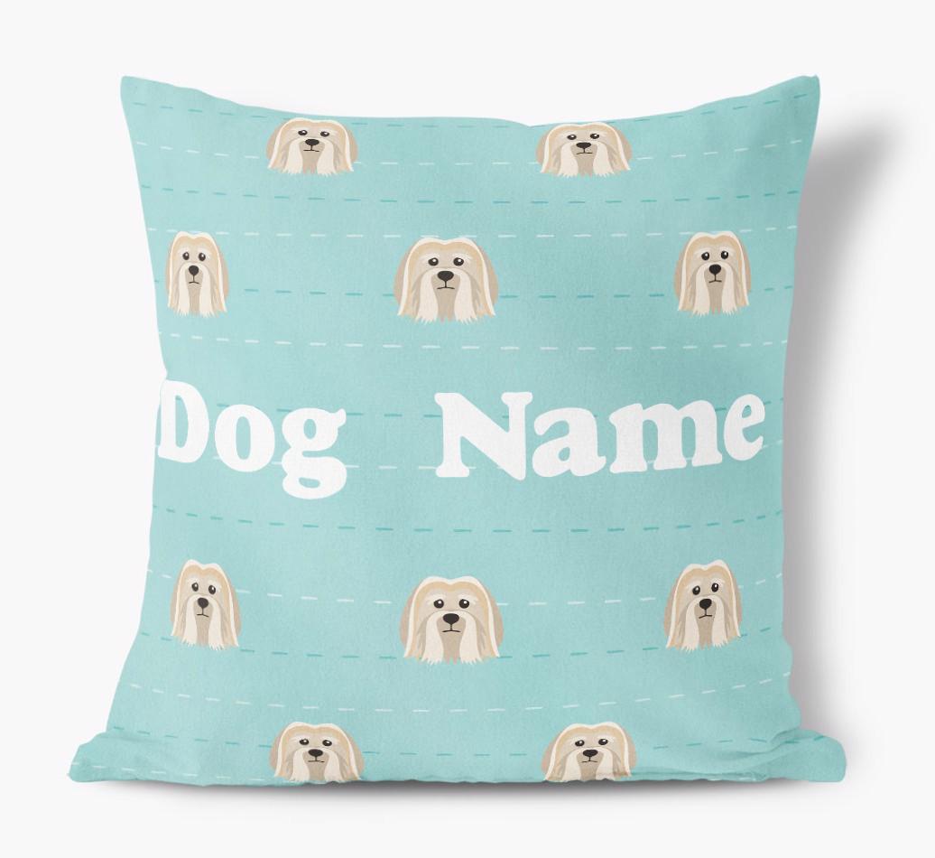 Featuring a furbulous Löwchen icon pattern, this pillow is available in six chic color-ways and is personalized with Your Löwchen's name.