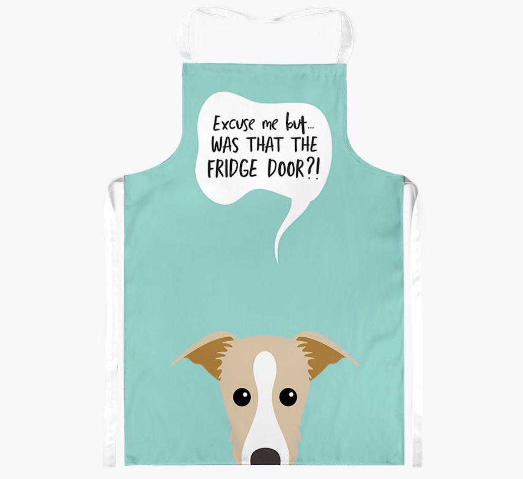Featuring your hungry hound's cheeky icon and available in five eye-catching colors, this apron is a must-have for parents of greedy pups!