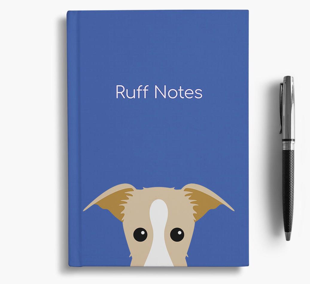 The front cover features our exclusive Lurcher peeking icon and is printed with the words, ‘Ruff Notes’, whilst the back is printed with the words ‘Live. Laugh. Woof.’.