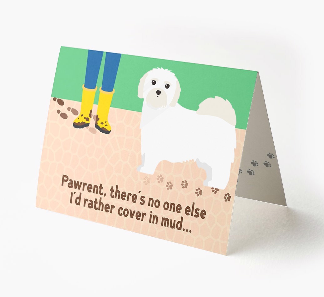 This comical card is sure to delight Mal-Shi's pawrent (without getting muddy), especially as it stars their Mal-Shi's cheeky icon.
