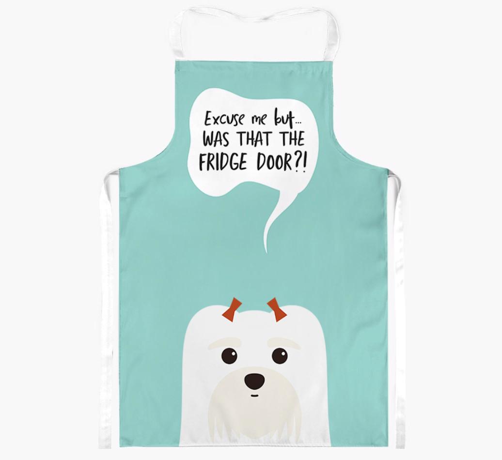 Featuring your hungry hound's cheeky icon and available in five eye-catching colors, this apron is a must-have for parents of greedy pups!
