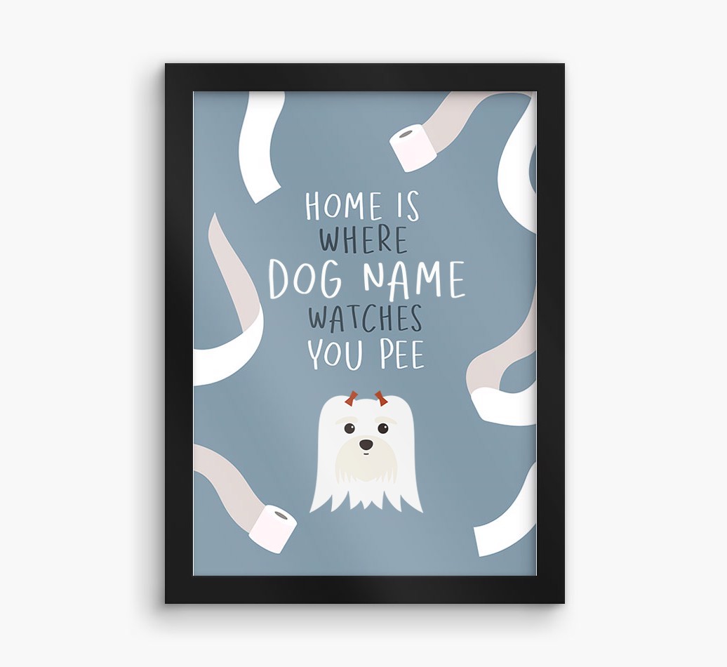 Pawfect for those with a love of toilet humour, or Maltese owners who can't take a bathroom break without their pup following them, this print will look simply splashing on display, especially as it's personalized with Maltese's name and icon to make it extra special.
