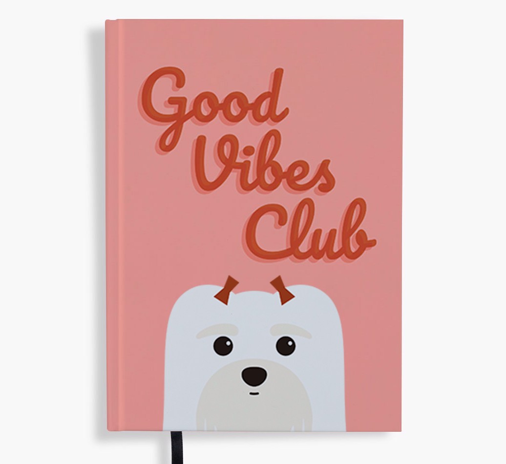 Are you and Maltese all about the good vibes? Customized with your pup’s cheeky icon, this sleek and stylish notebook is the pawfect way to show off the lead member of the Good Vibes Club. Plus, as it's available in a range of eye-catching colorways, it'll encourage pawsitivity and good vibes each time you put pen to paper.
