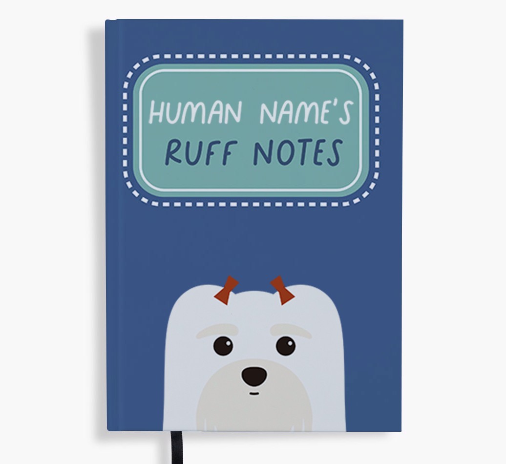 Starring Maltese's cute icon and personalized with your name, this vibrant notebook may be a place for your ruff notes, but the cover will always look wagnificent!