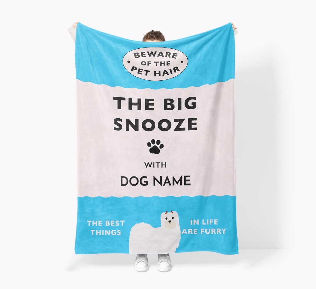 'Big Snooze' - Personalized Maltese Blanket: Premium Sherpa Fleece