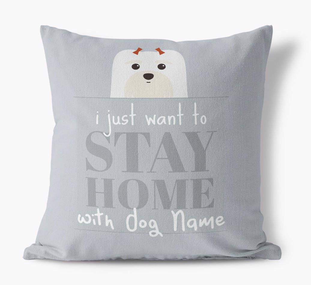 Stay Home: Personalized Maltese Canvas Pillow