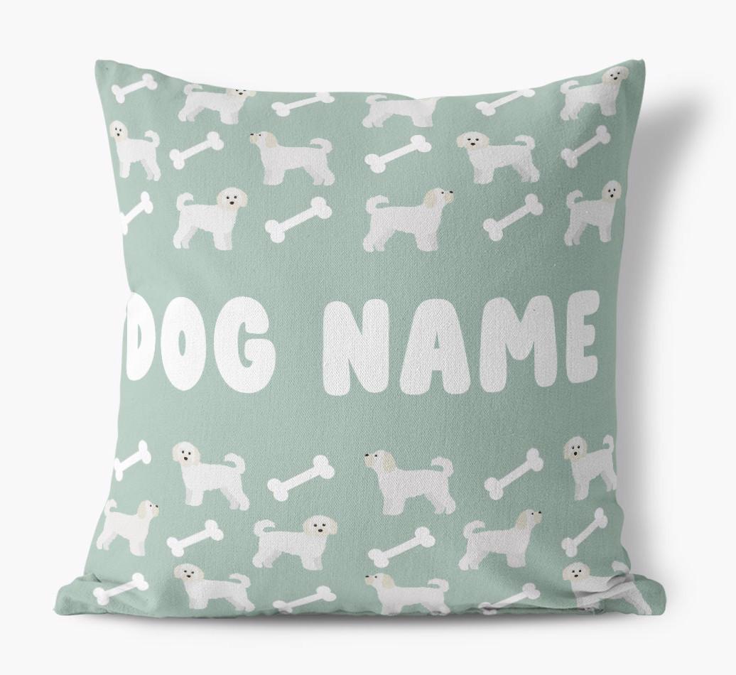 Personalized with Maltichon’s name against a background of Maltichon icons and bones, this gorgeous pillow is full of pawsonality.