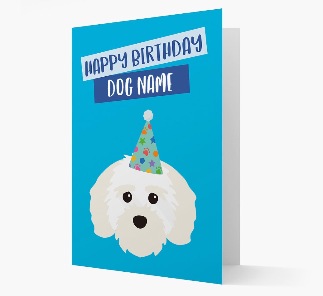 Why not wish Your Maltichon Happy Birthday in true pawty style with this party hat birthday card.