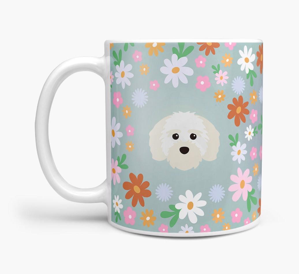 Featuring a colorful bunch of flowers, this mug is printed with the words 'woofly grandma' on one side of the mug and your Maltichon's cute icon on the other. Bloomin' lovely!