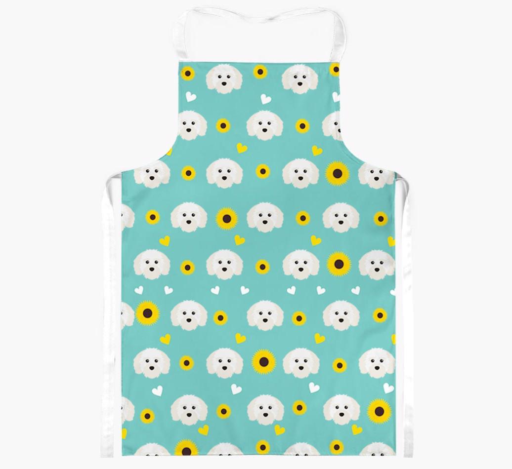 This apron has a delightful sunflower and heart pattern, and best of all - it's personalized with Maltichon's face too! This cute and colorful apron is sure to put a smile on every dog lover's face.