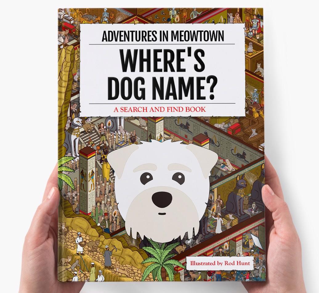 Get ready to unleash your inner detective with our popular Search & Find book, ‘Where’s (insert dog name)?’ It’s the personalized dog book everyone’s yapping about! With twelve beautifully illustrated locations to explore, we challenge you to find your adventurous {breedShortName} on each action-packed page. Can you spot all the canine cameos and funny parodies too?