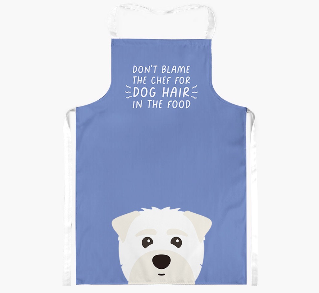 If you’re getting tired of people coming round and moaning about Maltipom hair in the food, you’re going to need this apron to remind them that you cannot be blamed, it’s Maltipom’s fault!