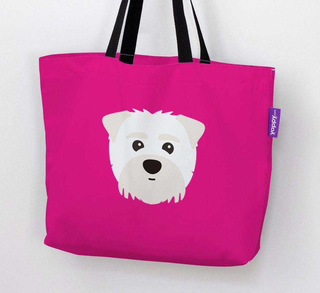 This Canvas Bag features an exclusive Maltipom icon printed on a bright, bold background.