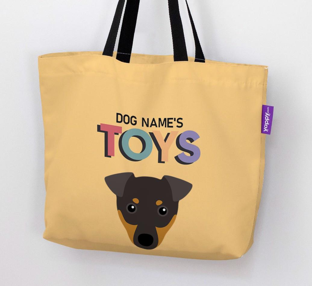 Don’t worry, we’ve got you covered with this pawsonalized canvas bag made for your Manchester Terrier’s toy collection!