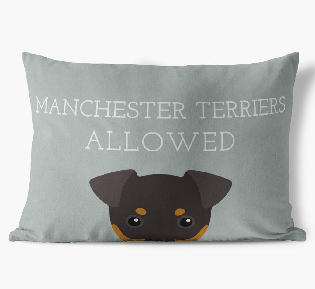 This exclusive, luxurious pillow is printed with the words ‘Manchester Terriers Allowed’, which I’m sure Your Manchester Terrier would definitely approve of.