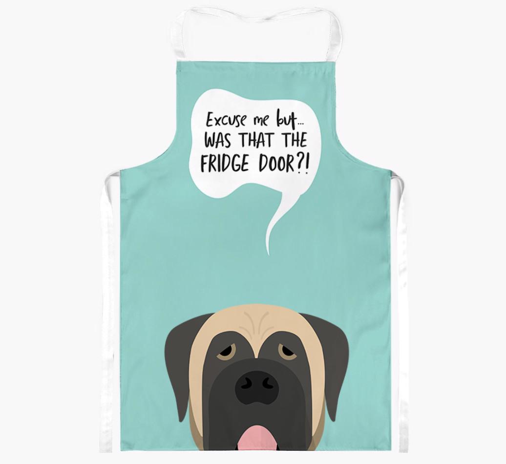 Featuring your hungry hound's cheeky icon and available in five eye-catching colors, this apron is a must-have for parents of greedy pups!