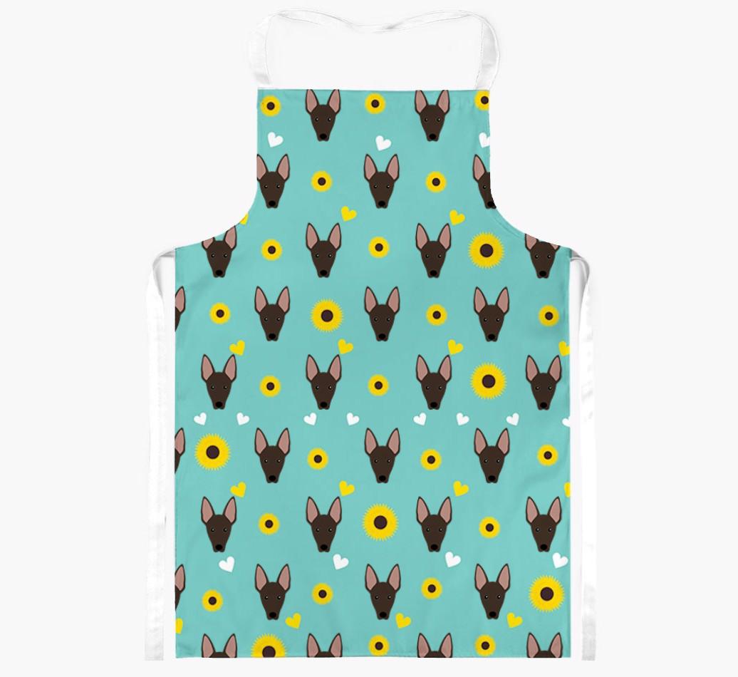 This apron has a delightful sunflower and heart pattern, and best of all - it's personalized with Mexican Hairless's face too! This cute and colorful apron is sure to put a smile on every dog lover's face.
