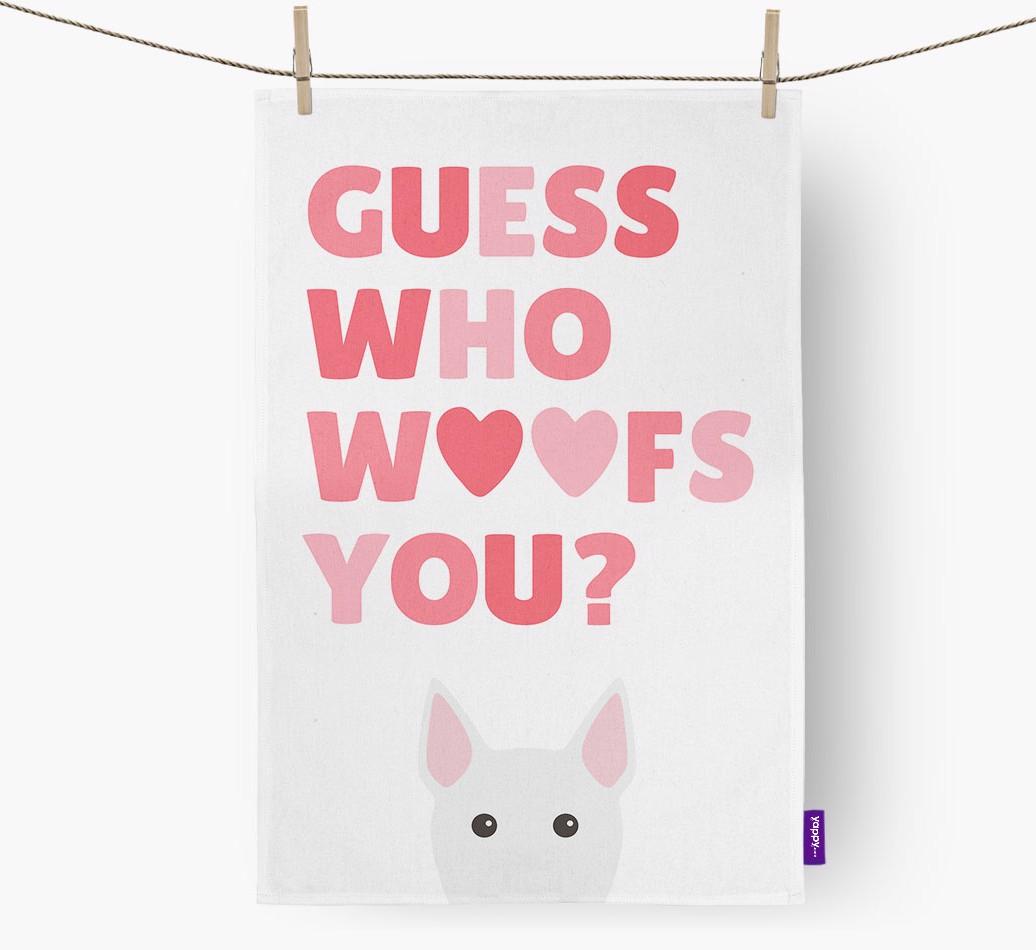 'Guess Who Woofs You?' - Personalized Miniature Bull Terrier Dish Towel
