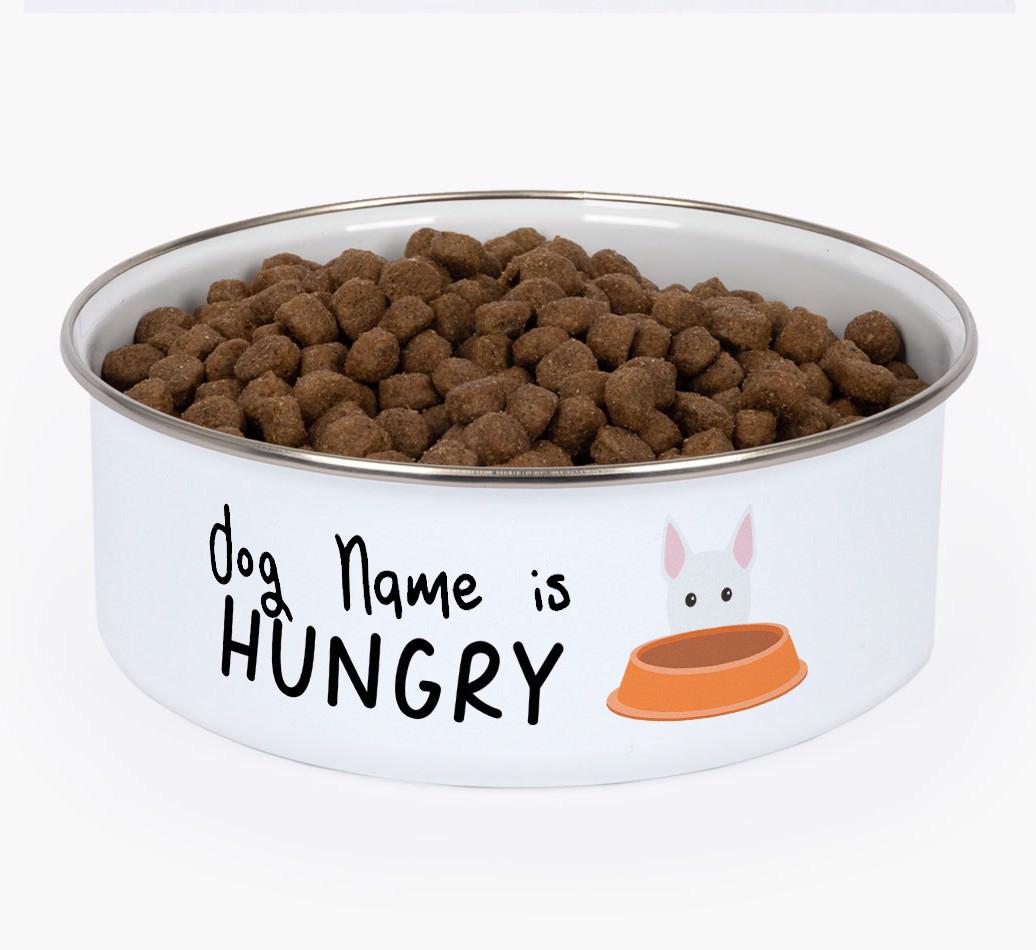 Hungry/Full: Personalised Enamel Miniature Bull Terrier Bowl