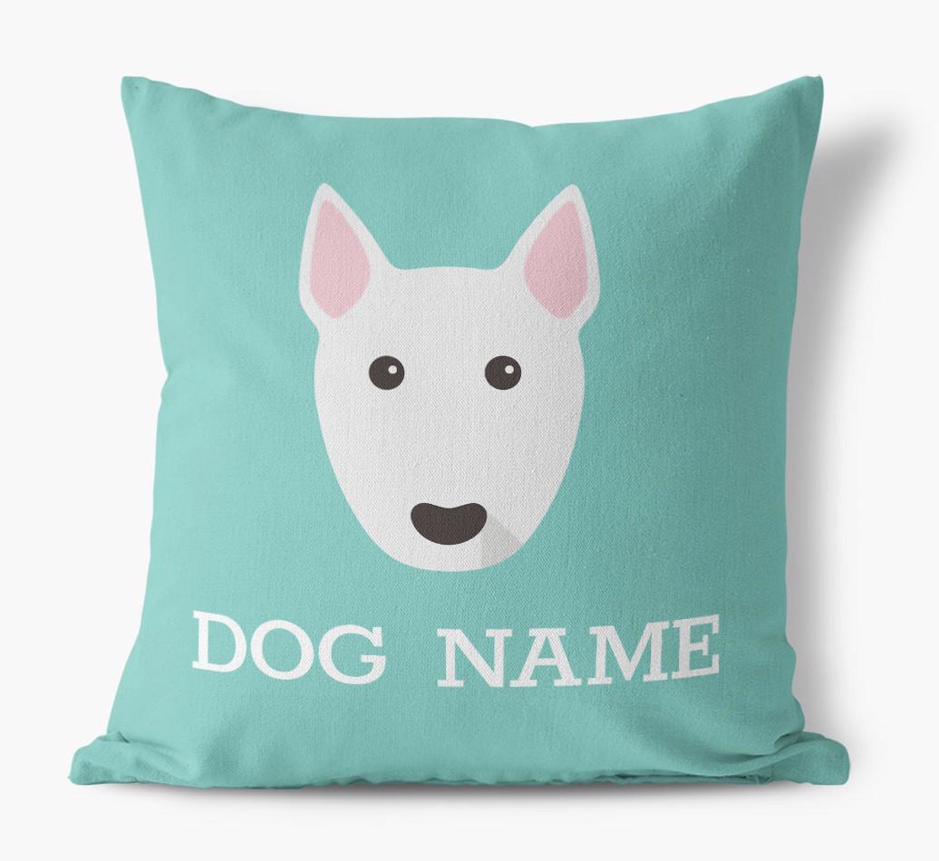 This Yappy exclusive canvas pillow features a large Miniature Bull Terrier icon and it's personalized with your beloved dog's name to make it extra special.