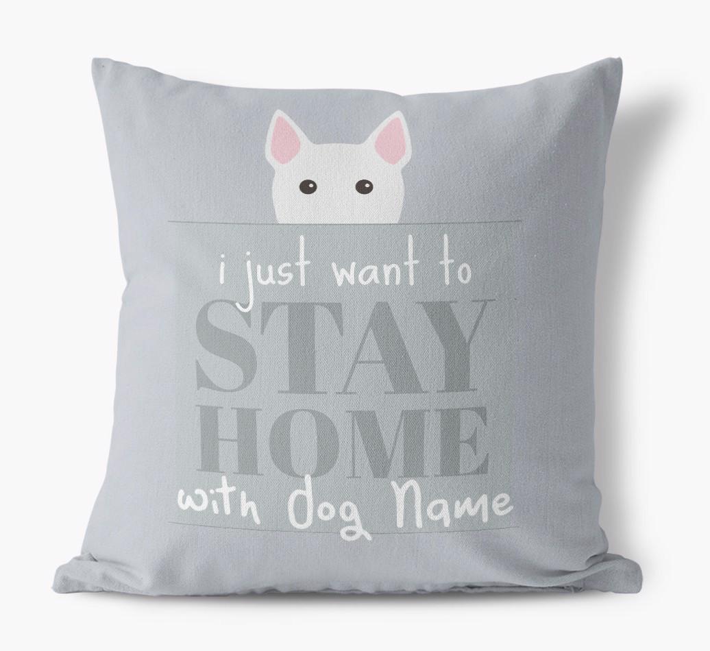Stay Home: Personalized Miniature Bull Terrier Canvas Pillow