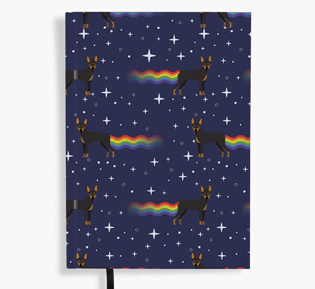 Featuring your cheeky Min Pin, lots of twinkling stars and available in a range of bold colors, this fun notebook is truly out of this world.