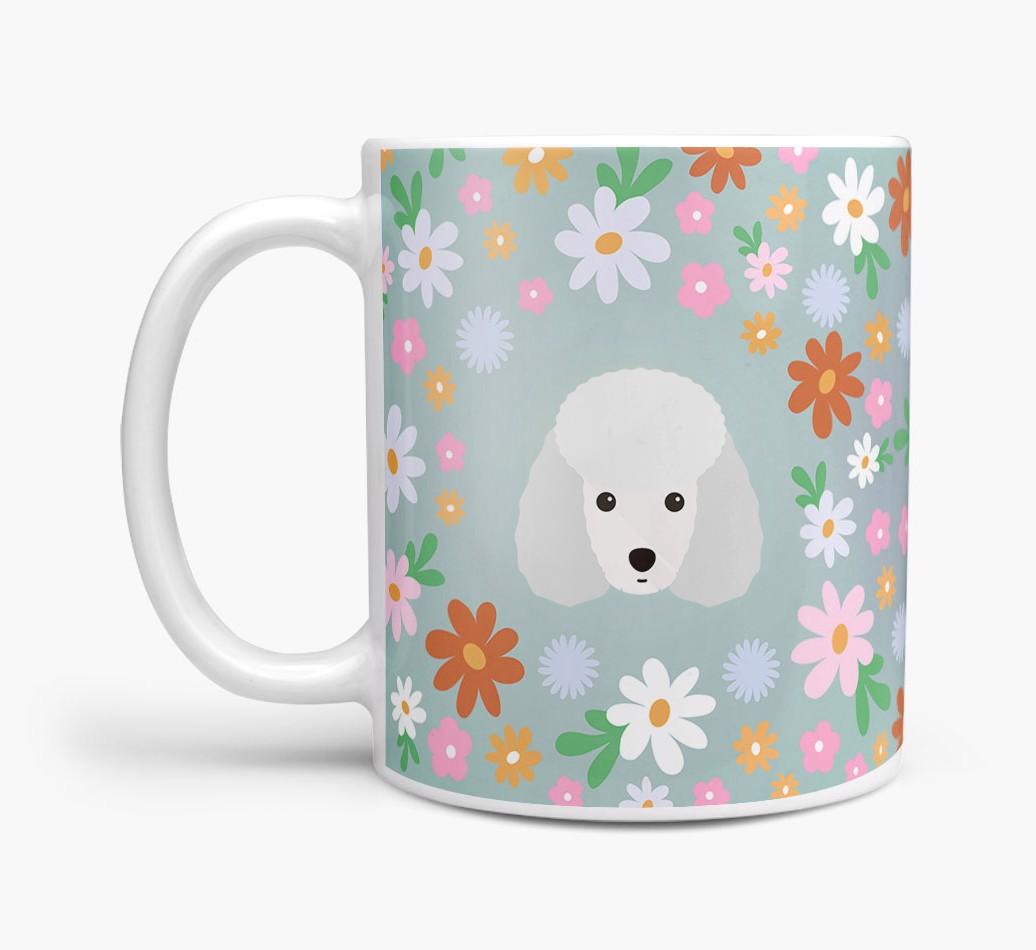 Featuring a colorful bunch of flowers, this mug is printed with the words 'woofly grandma' on one side of the mug and your Mini Poodle's cute icon on the other. Bloomin' lovely!