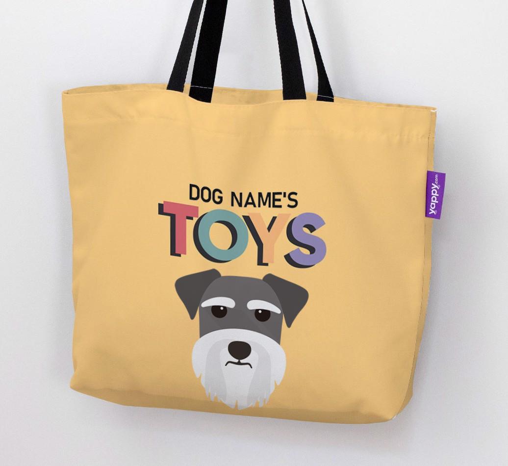 Don’t worry, we’ve got you covered with this pawsonalized canvas bag made for your Miniature Schnauzer’s toy collection!