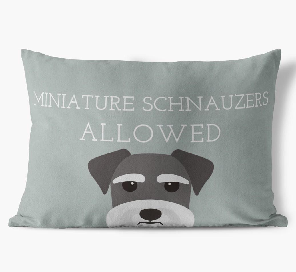 This exclusive, luxurious pillow is printed with the words ‘Miniature Schnauzers Allowed’, which I’m sure Your Miniature Schnauzer would definitely approve of.