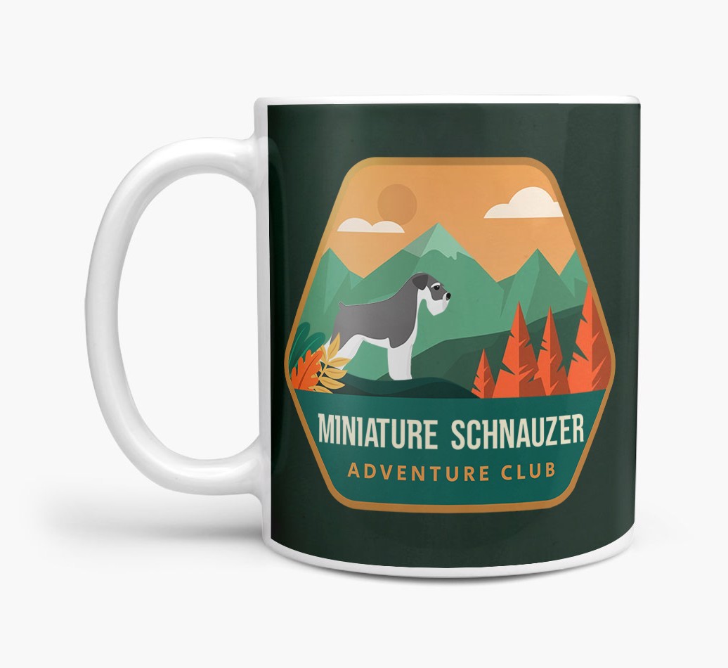 Featuring a gorgeous sunset design and personalized with Miniature Schnauzer's icon, this is the ultimate mug for lovers of the great outdoors and proud members of The Miniature Schnauzer Club.