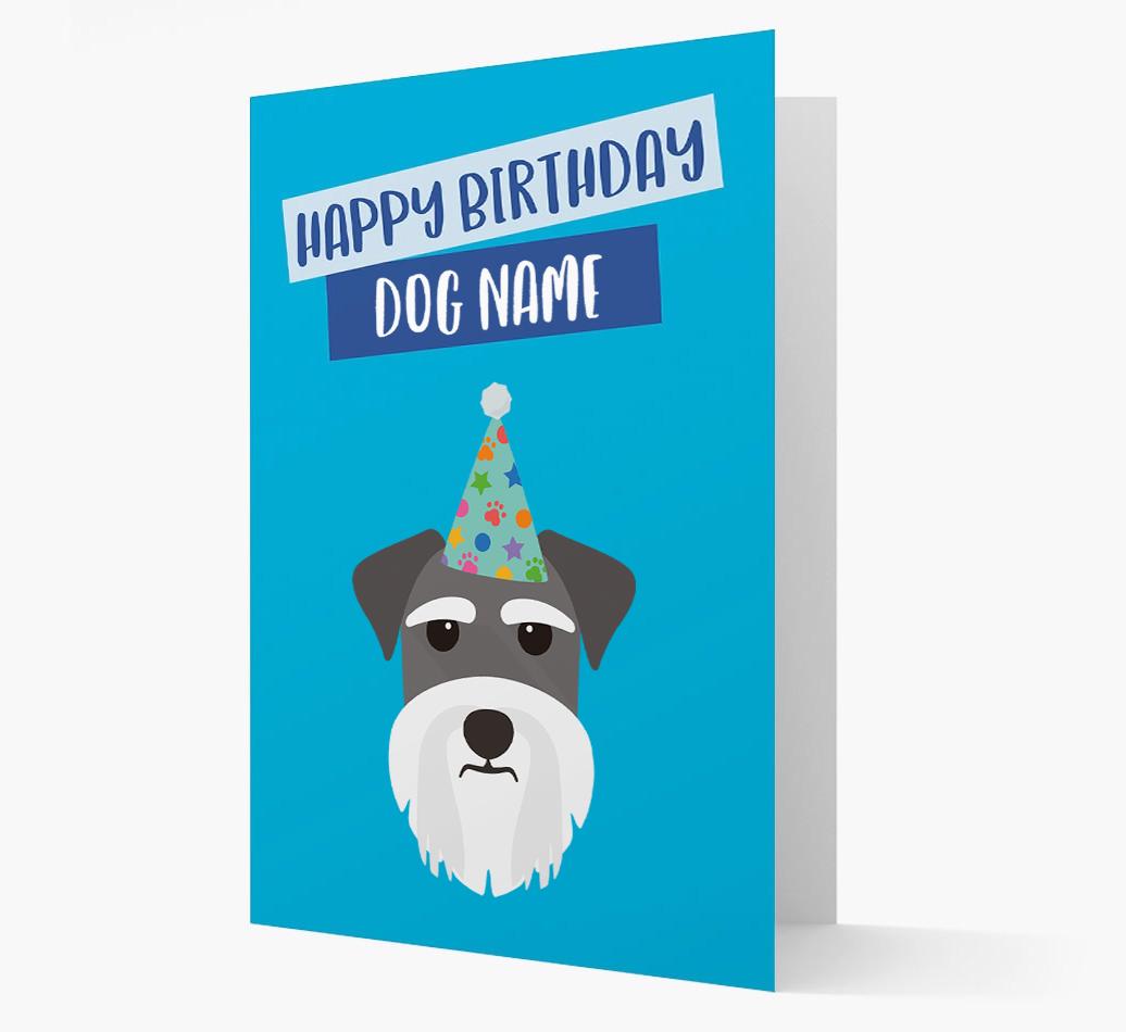 Why not wish Your Miniature Schnauzer Happy Birthday in true pawty style with this party hat birthday card.