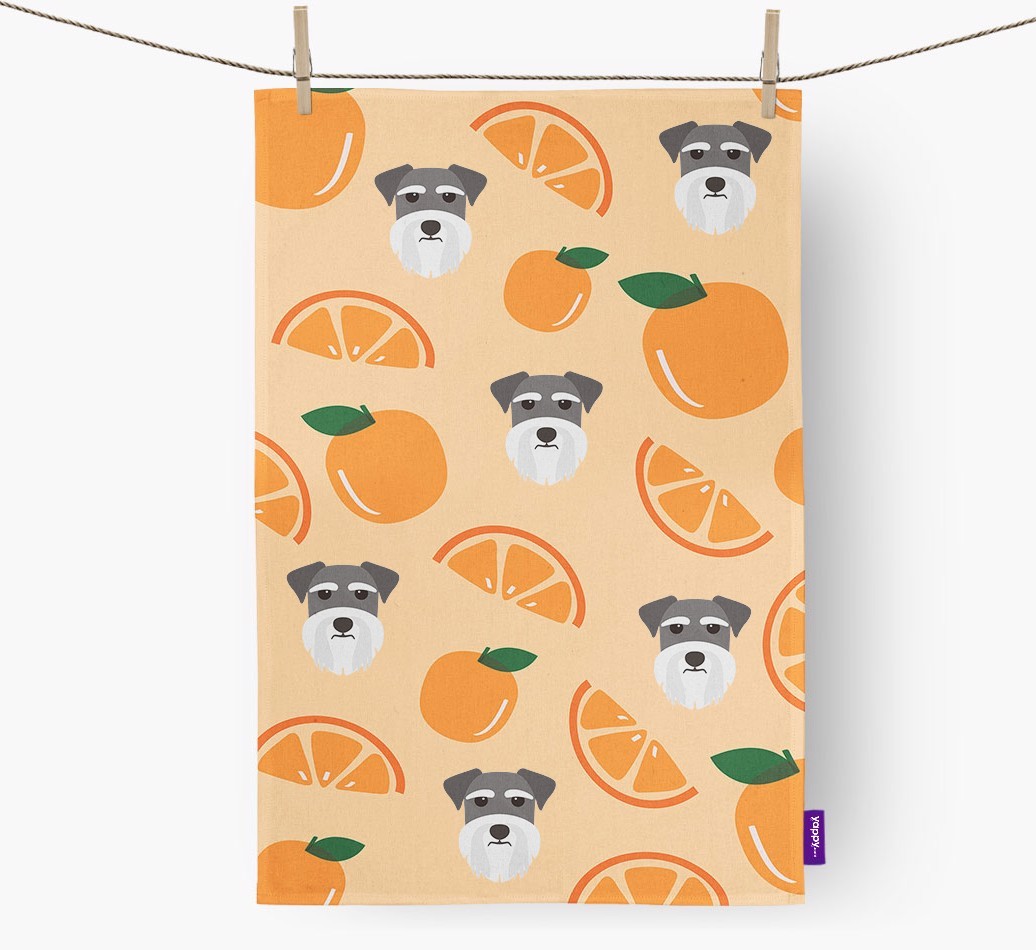 Whether you want to show off your main squeeze with an orange pattern or you like strawberries very berry much, choose from four fruity designs. Plus, each dish towel is personalized with cute Schnauzer icons to make the design extra sweet!