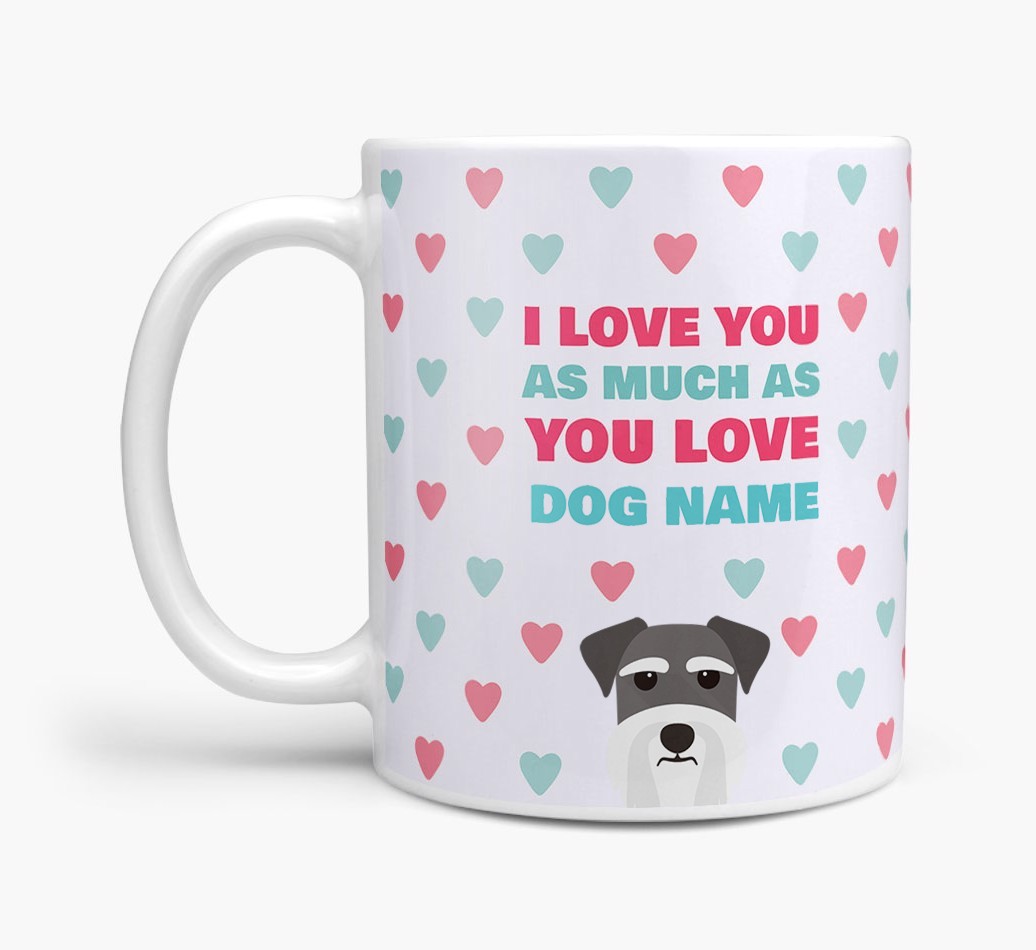 Featuring a pattern of hearts and personalized with Miniature Schnauzer's name and their adorable icon, this mug is sure to make the receiver feel plenty of love and warmth towards you – and that’s not just from their coffee!