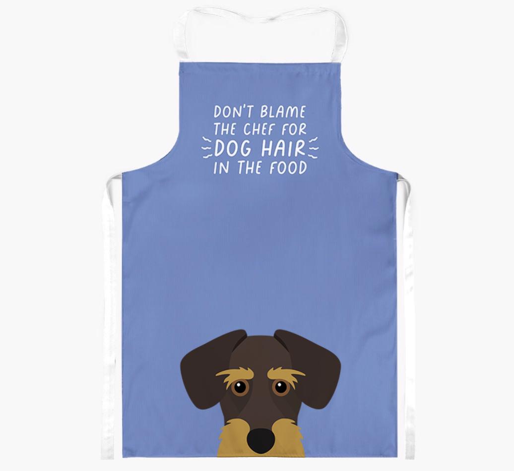 This funny apron will warn friends and family not to blame the chef for dog hairs in their food, they have Miniature Schnoxie to thank for that!