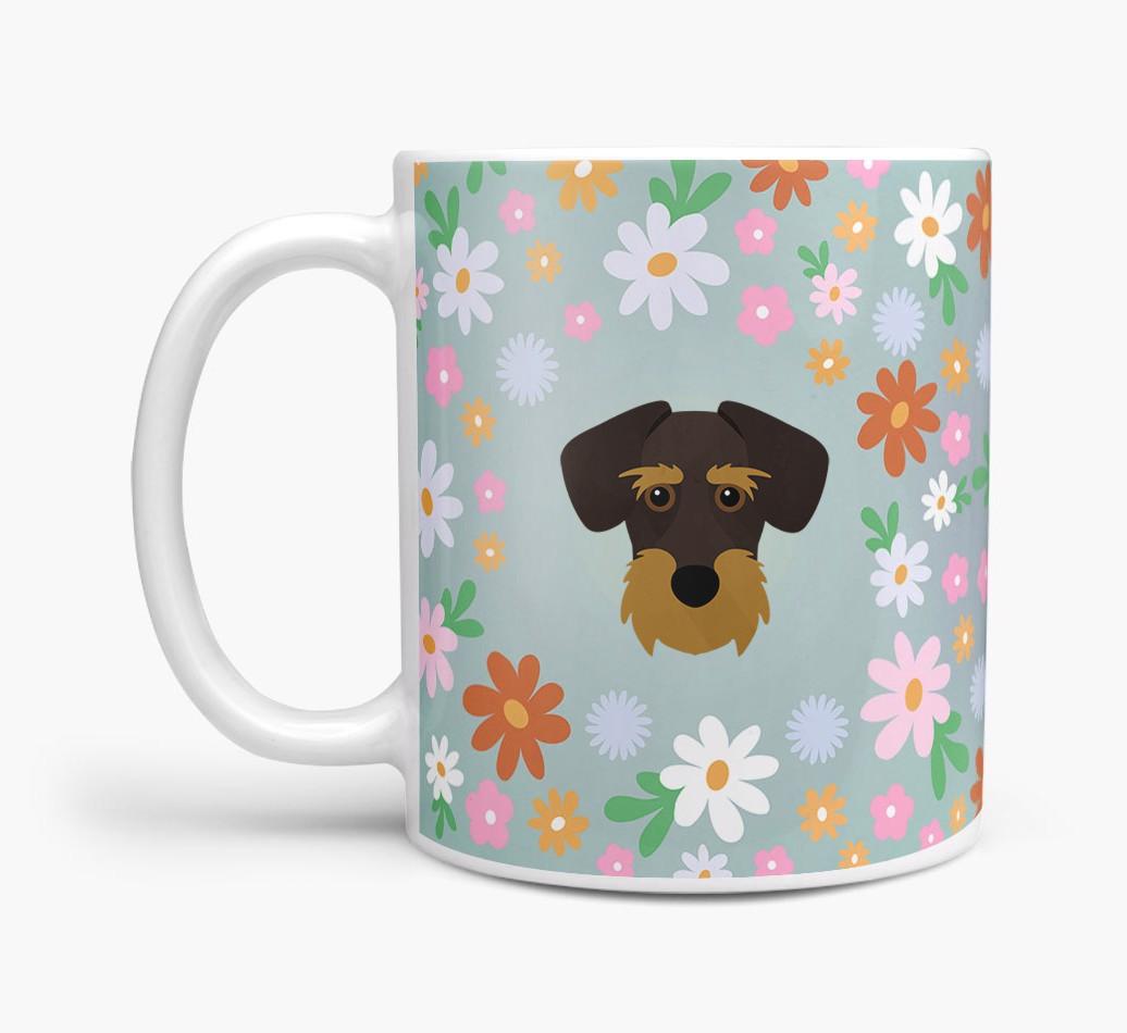 Featuring a colorful bunch of flowers, this mug is printed with the words 'woofly grandma' on one side of the mug and your Schnoxie's cute icon on the other. Bloomin' lovely!