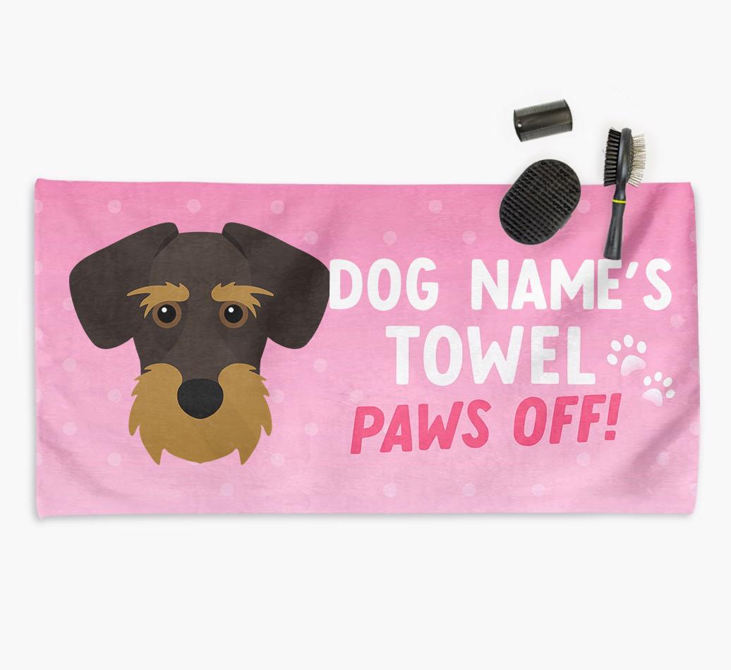 Perfect for messy pups and for pampering your Schnoxie at bathtime, this soft and absorbent towel is made for cleaning your mucky pup and drying them off in a flash. It's personalized with Miniature Schnoxie's name and icon and is printed with a message for everyone else to keep their paws off it!
